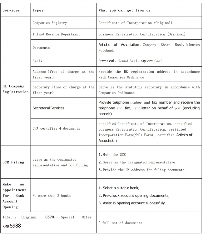 In order to express our thanks to clients, Blue Ocean has launched a special package: Hong Kong company registration + SCR filing + Hong Kong bank account opening.
